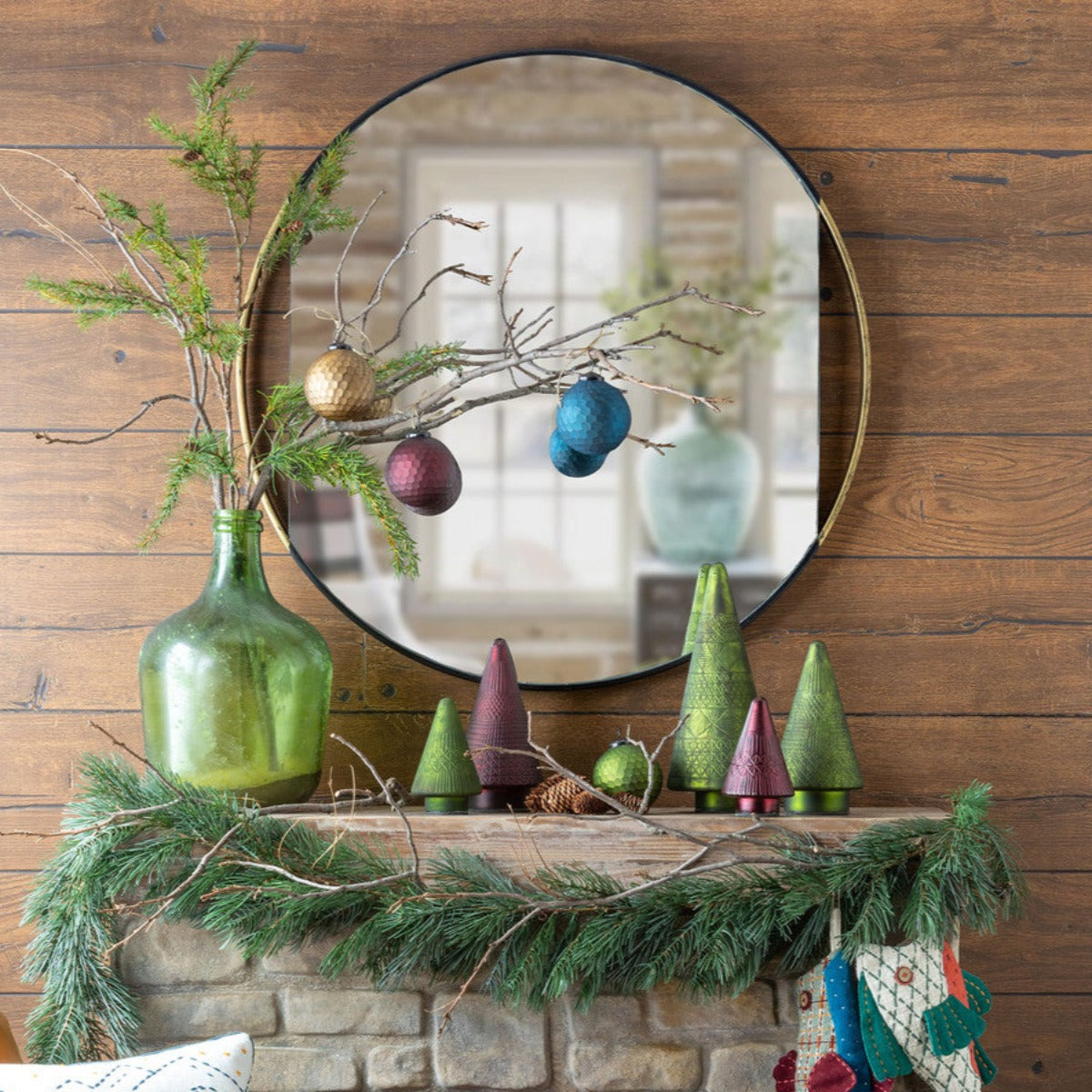 Our Antique Green Cellar Bottles, reminiscent of a time when every object was crafted with care, are as functional as they are decorative. The smallest bottle invites you to start a window-sill herb garden, the medium is perfect for rooting ivy cuttings, and the large one is just the right size for creating an eye-catching terrarium. As each bottle catches the light, their antique green finish becomes a living art piece, changing throughout the day. Imagine them lined up on your dining table, each filled with wildflowers, or as an unexpected element in a more modern setting, where they bring warmth and a hint of nature's unpredictability.