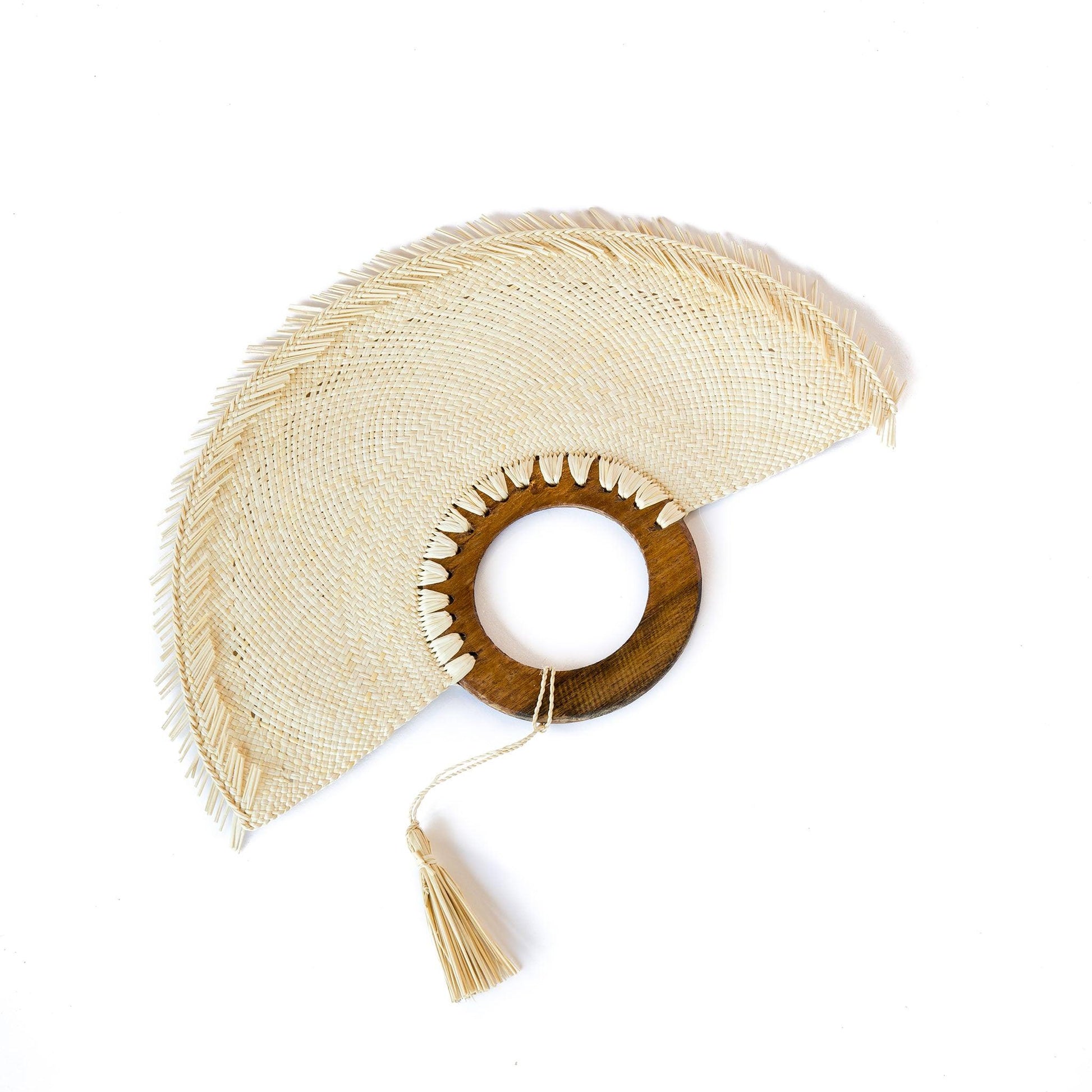 The decorative Brontes fan is a fun styling piece. With dark wood handle and natural woven fan, the Brontes is reminiscent of a vacation spent south of the border. Sold as a set of 2.